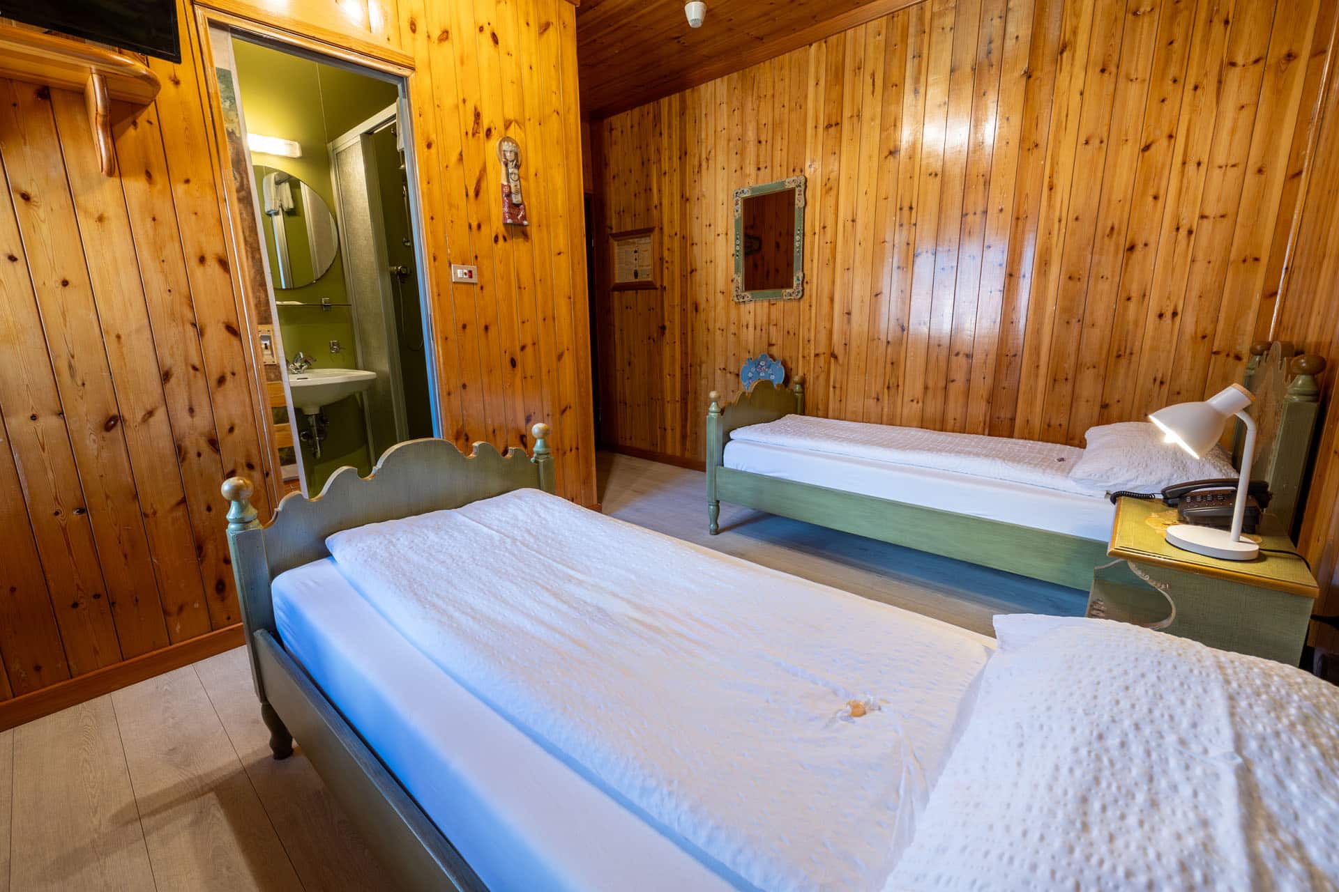 Camera in stile alpino rivestite in perline con TV LCD. A disposizione un bagno privato con asciugacapelli e set di cortesia, asciugamani e lenzuola. Alcune stanze di questa tipologia possono non essere dotate di bidet.